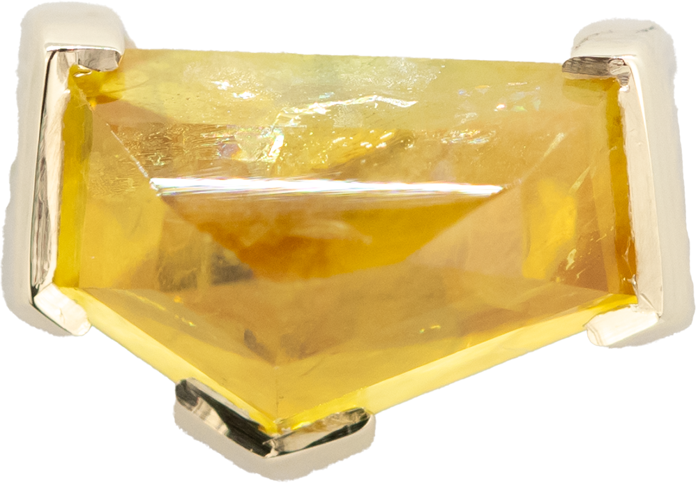 Geometric Cut Kenya Sapphire Partial Bezel Yellow Gold Threadless End 6.4mm x 4.2mm