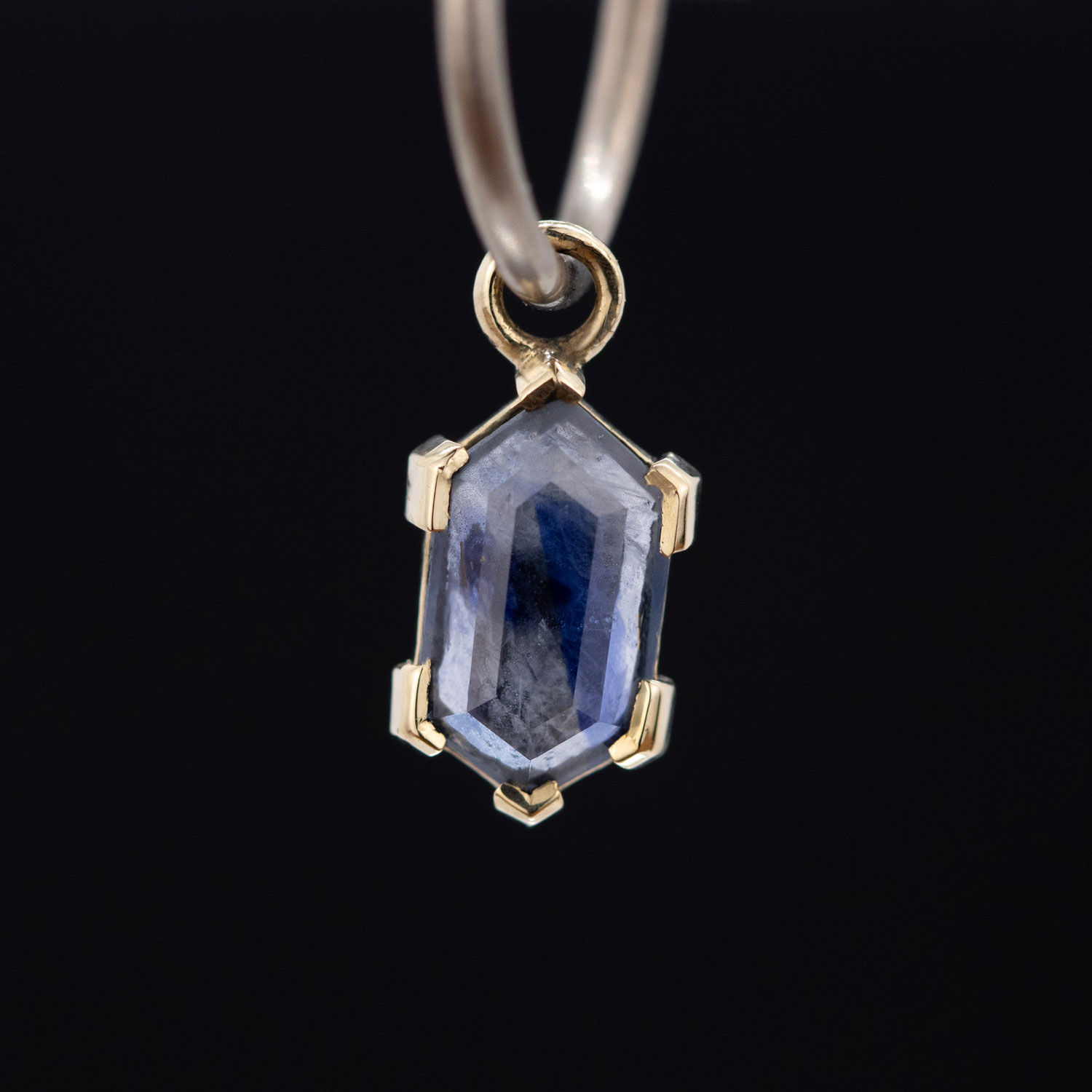 Stunning denim blue Madagascar origin sapphire in a partial bezel setting.